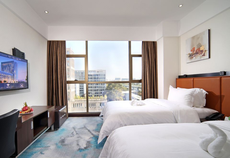 豪华双床房(超静音零压力床垫+小度+大浴缸+落地窗)